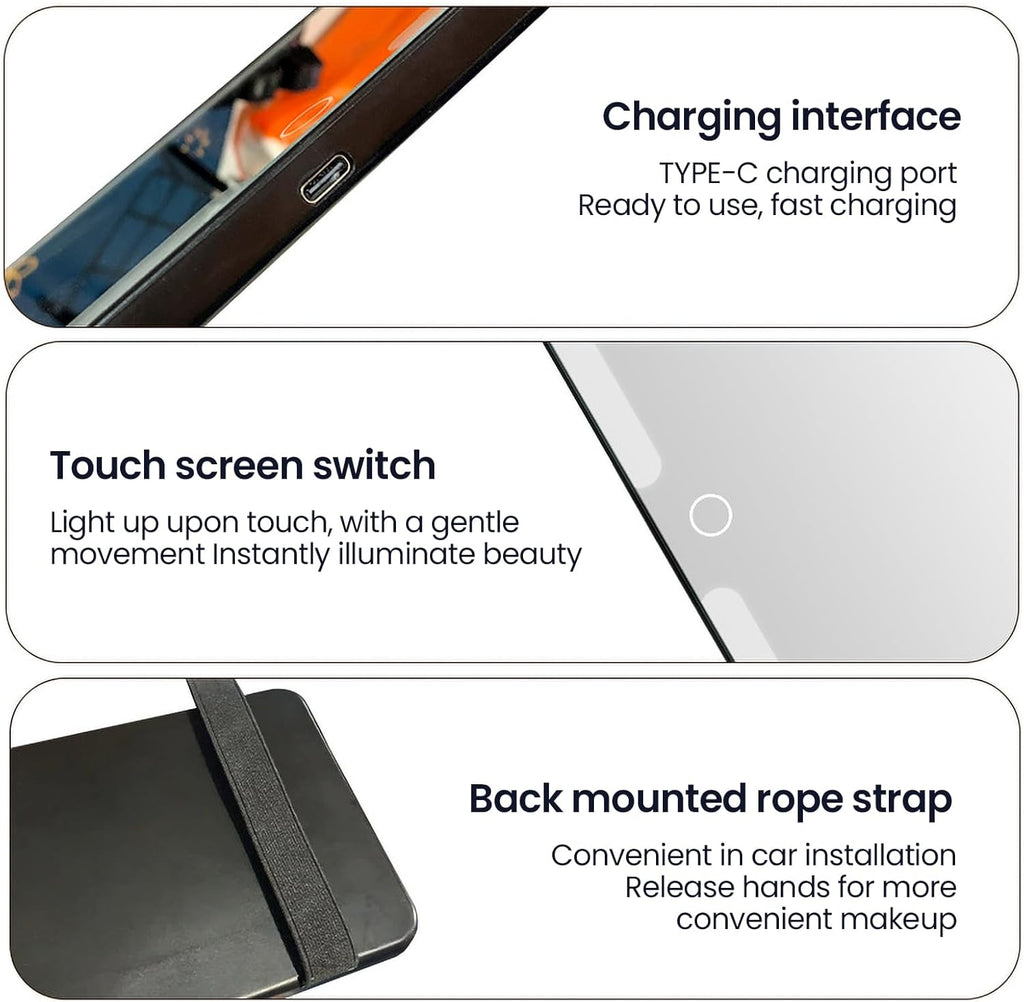- Compra un regalo práctico y hermoso para tu esposa, novia, hermana, hija, madre. Este espejo de tocador iluminado para automóvil es fácil de usar, no bloquea la vista y no ocupa el coche. espacio adicional en el interior.